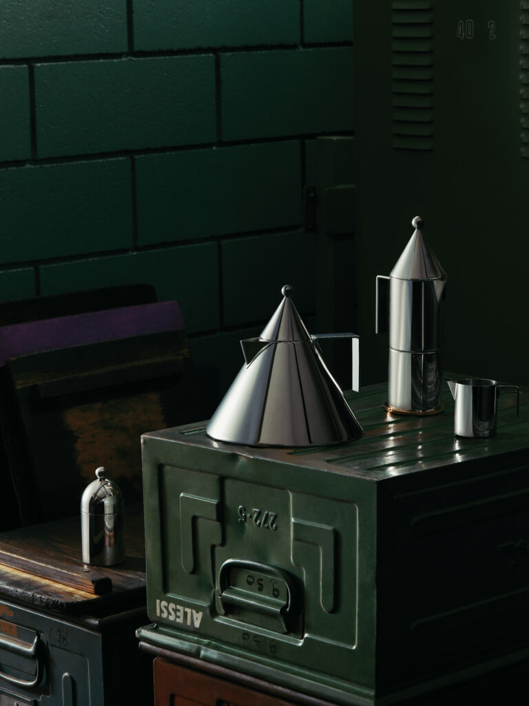 Just like the ‘La Conica’ espresso maker by Aldo Rossi, the approach to connecting architecture and household objects is clear with the ‘Il Conico’ kettle.