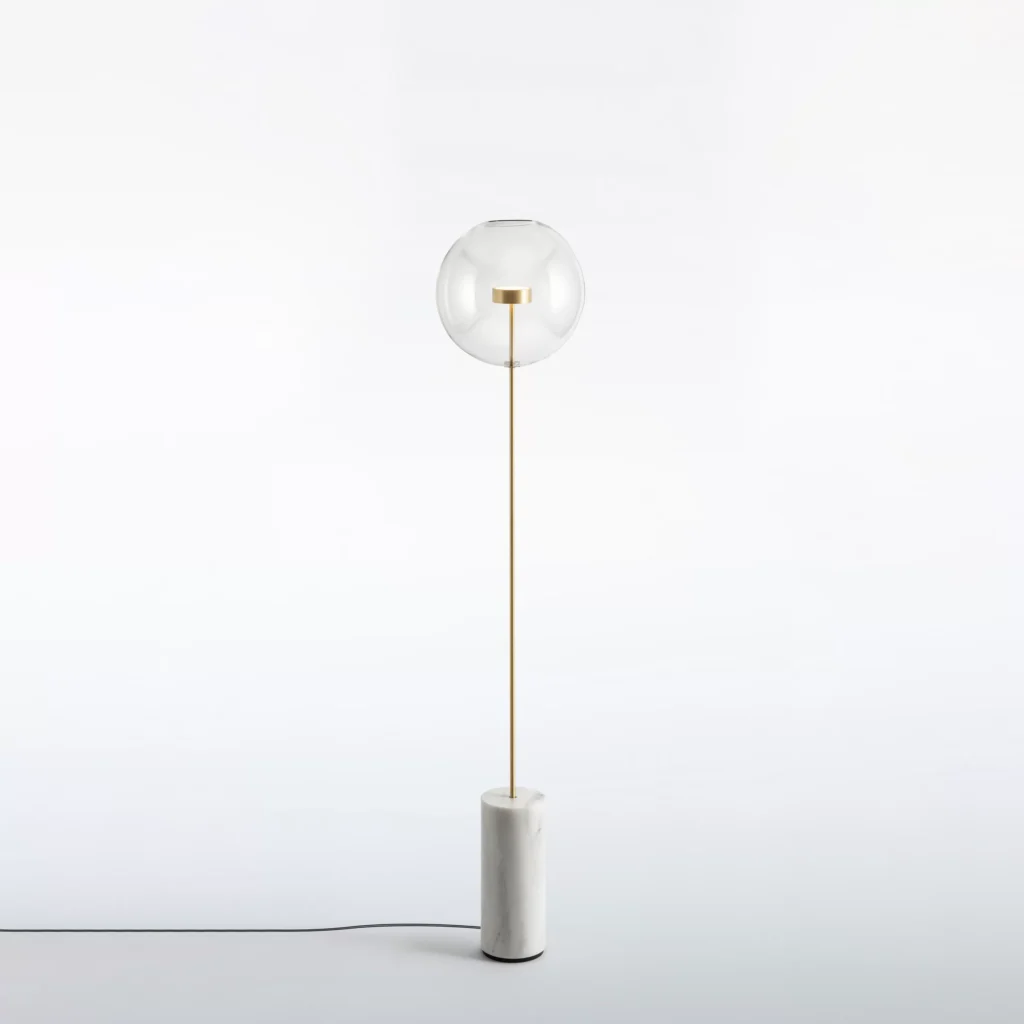 DiscoverSoffio collection evolves from the Bolle series, magnifying the sense of suspension of the glass sphere on the brass structure.